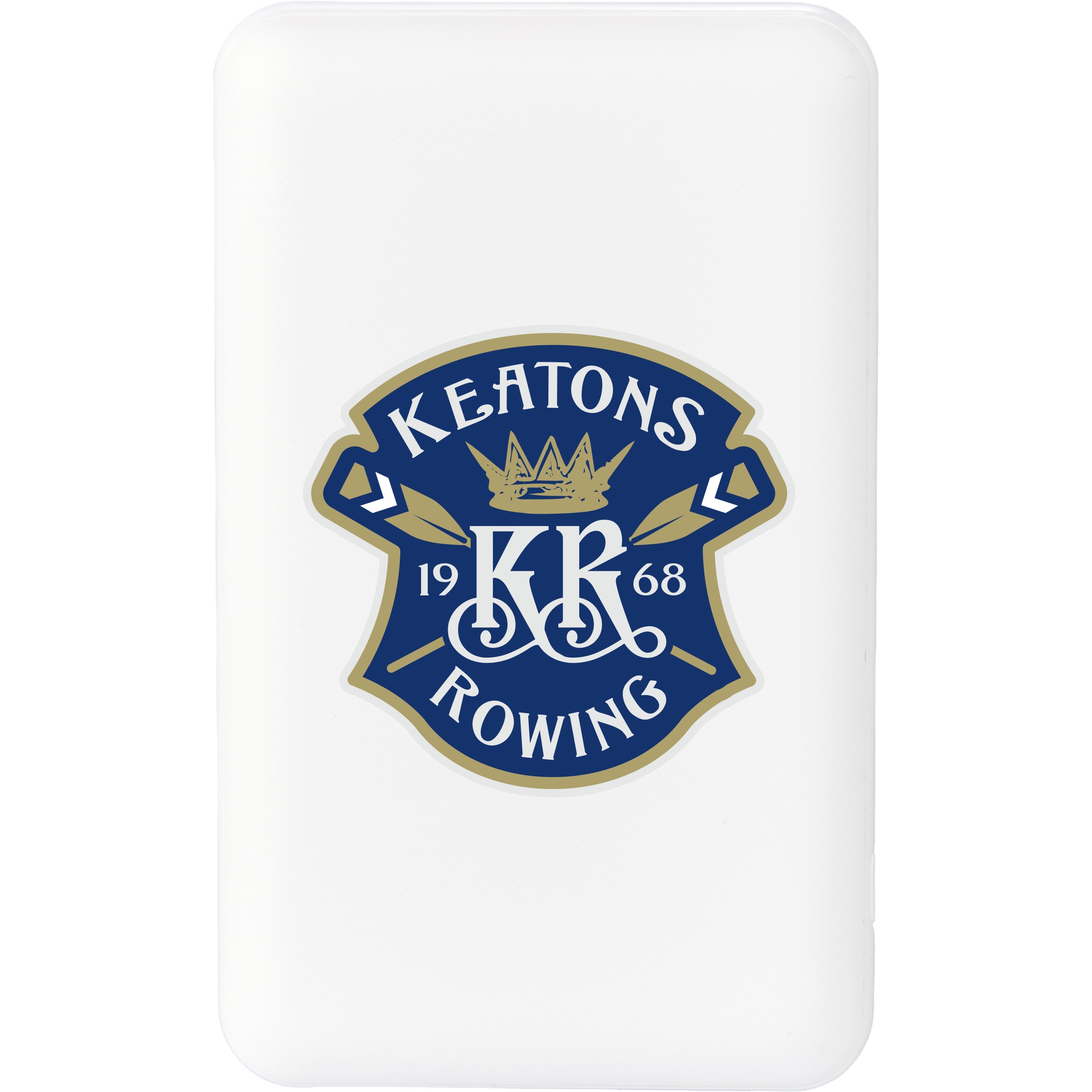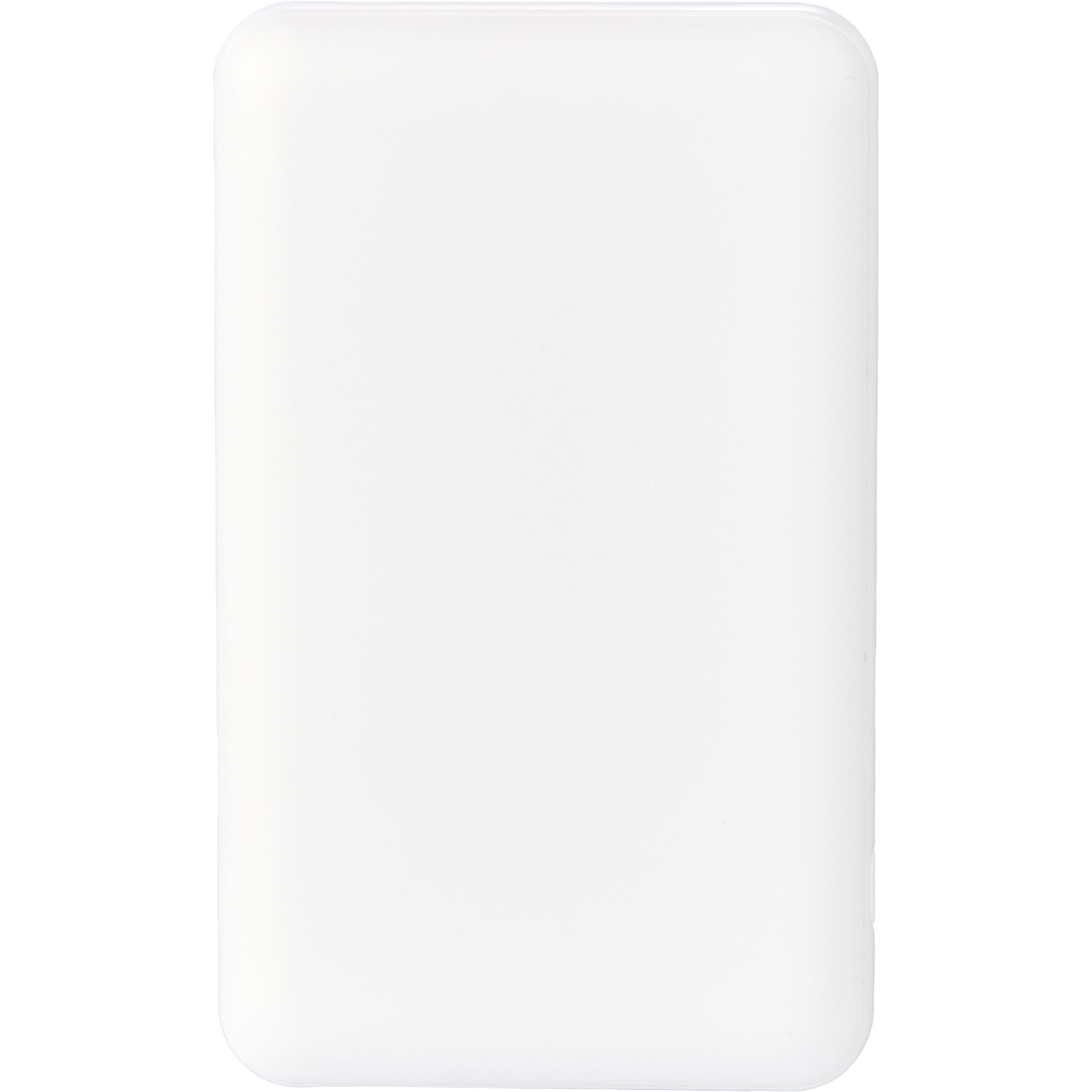 The UL Listed Connect 5000 mAh Wireless Power Bank features a rechargeable lithium polymer battery (18.5Wh) for charging smartphones and other devices. It also offers 5W wireless charging and works with most plastic phones cases or covers on. Type-C Input/Output: 5V/2A; USB-A Output: 5V/2.1A. UL certified. Includes a 19-inch USB-A-to-Type-C charging cable. Packaged in a FSC®-certified white gift box. Power banks are permitted in carry-on luggage only, and at the discretion of TSA agents. Please charge power bank before initial use. 4.13″ D x 2.48″ W x 0.39″ H